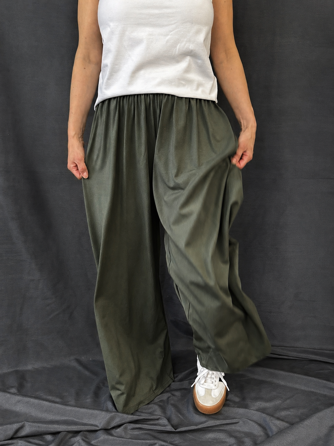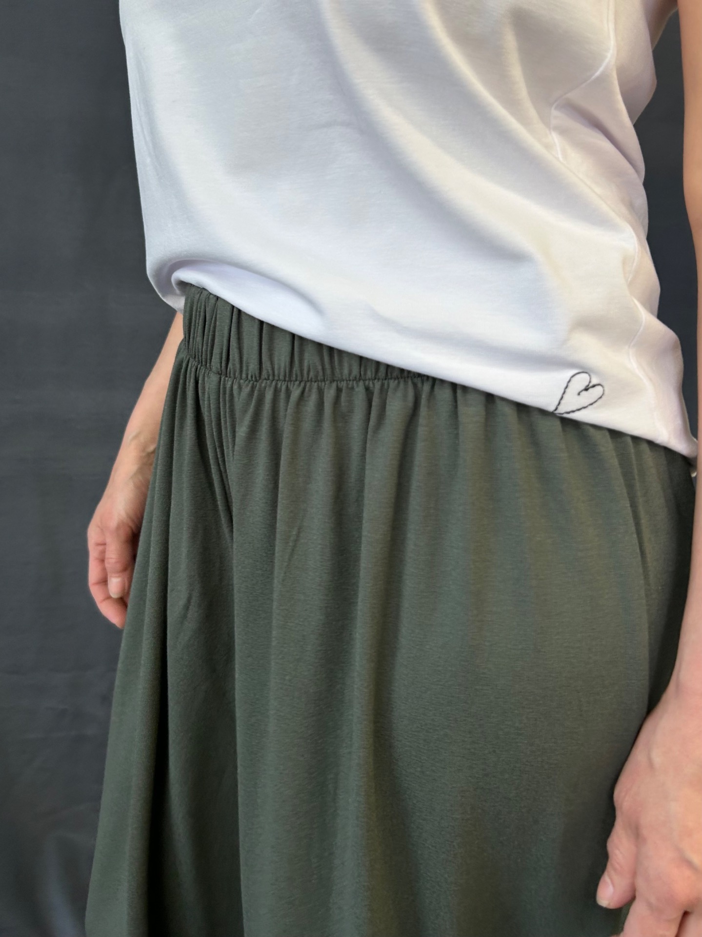 Pas stažený do gumy si můžeš upravit podle sebe - nosit níž nebo výš, tak, jak je ti to zrovna příjemné.