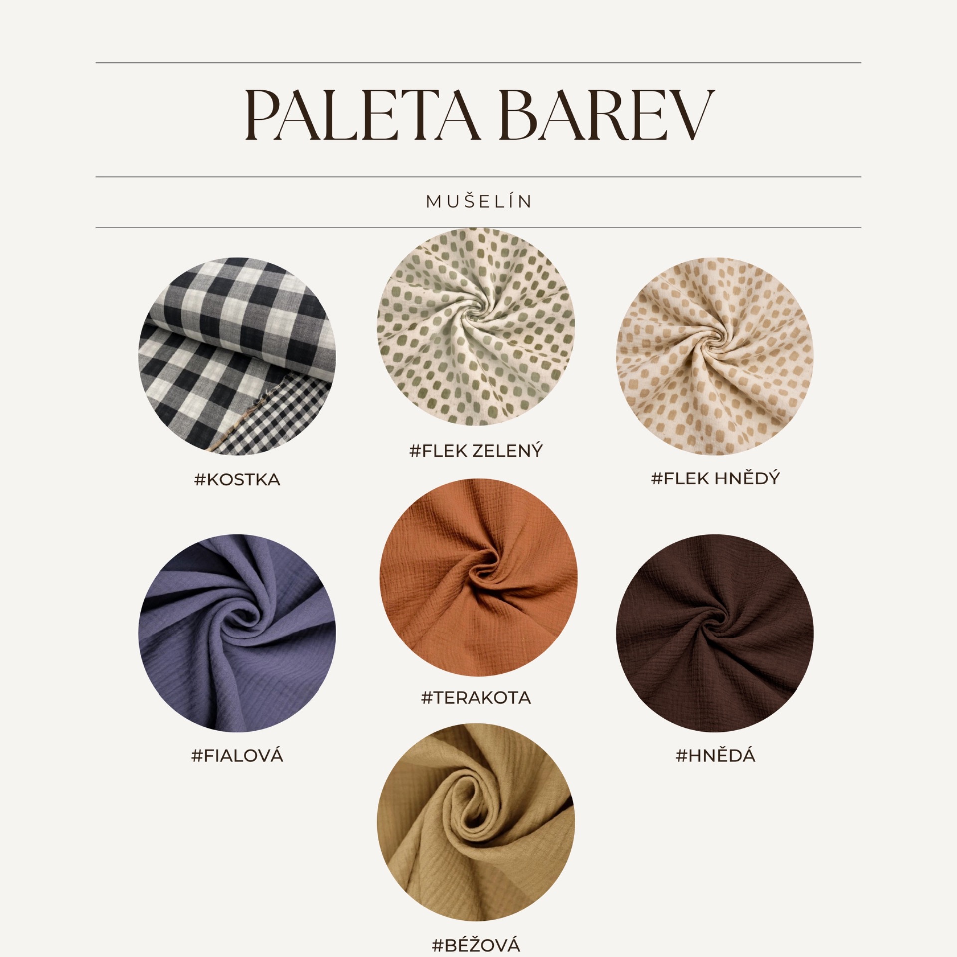 Šaty z mušelínu v různých vzorech a barvách. 100% bavlna.