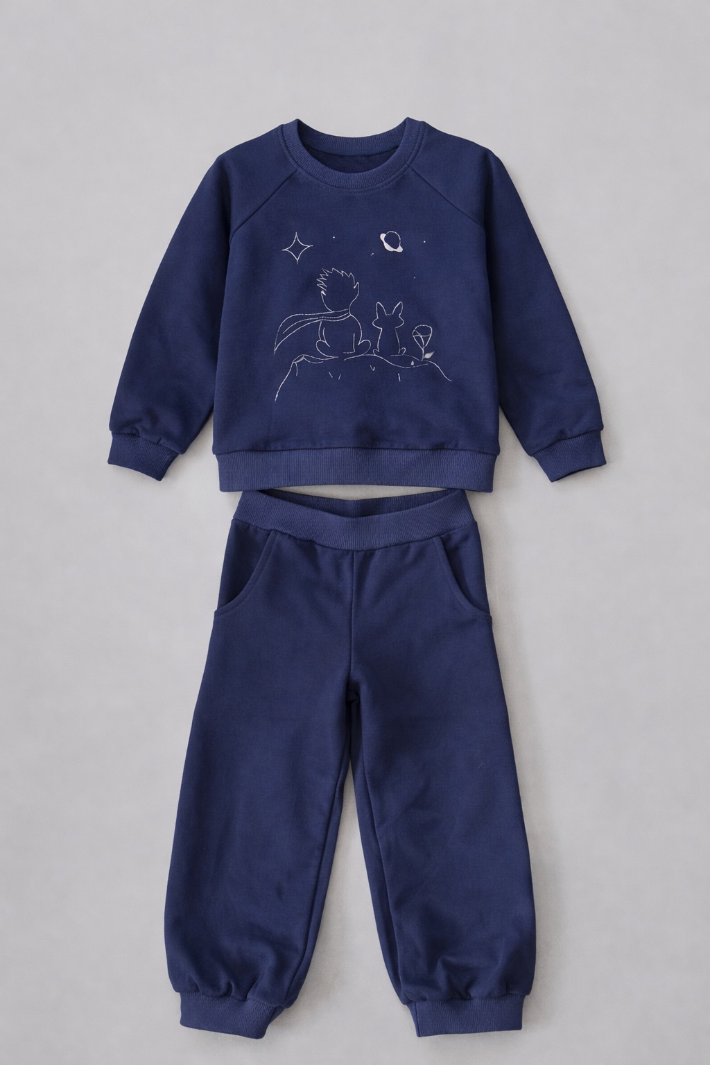 Jemnost v klidné, nekřičící podobě. Tmavší modrá barva působí čistě a přirozeně, zároveň je praktická - drobné "čmouhy" v ní zůstávají skoro neviditelné. Střih s rovnějšími nohavicemi a náplety drží pohodlí i volnost. Výšivka Malého prince celý kousek jen tiše doplňuje.