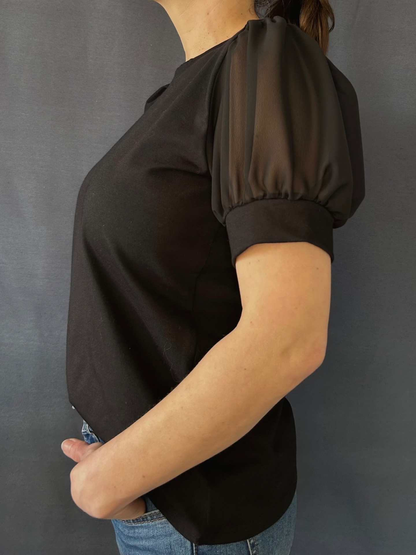 Dámské tričko s – elegantní a zároveň jemné tričko, kde průhledné rukávy dodávají lehkost a stylový detail. Skvělá volba pro sofistikovaný casual look.